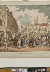 In this print, Corinthian Tom’s tailor, Mr. Primefit, has come to Corinthian House to fit Jerry Hawthorn for a new suit. Jerry stands in the center, his back to the viewer, while Mr. Primefit... Author: Egan, Pierce 31 August 1820 |